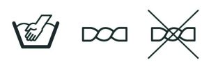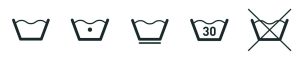 • Tub with a hand = hand wash or use delicate cycle (40°C/104°F or lower).